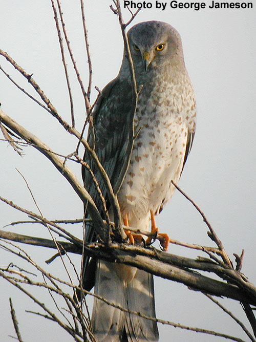 Like most other harriers, the Northern Harrier nests on the ground, usually in tall, dense clumps of vegetation, either alone or in loose colonies. The female will lay 4-5 pale blue eggs,sometimes marked with light brown spots.