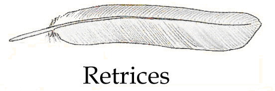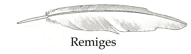 Identify remiges by their asymmetry with the vane much smaller on one side of the rachis than the other side because the pressures on the leading edge of the feather greatly exceed those on the trailing edge. Coverts, the majority of contour feathers, cover the bases of the flight feathers. Contour feathers also give the birds their color and provide a defense against physical objects, sunlight, wind and rain. Remiges include the long primaries, located near the wingtip, and the shorter secondaries, which line the trailing edge of the inner wing. The primaries anchor to the avian equivalent of the mammalian hand bones, called the manus, while the secondaries attach to the ulna in the “lower arm.” Melanin blackens the tips of the primaries of many large birds that fly great distances such as the Snow Goose and White Pelican. The durability of melanin lessens wear on the wingtips, the equivalent of a propeller for the bird.