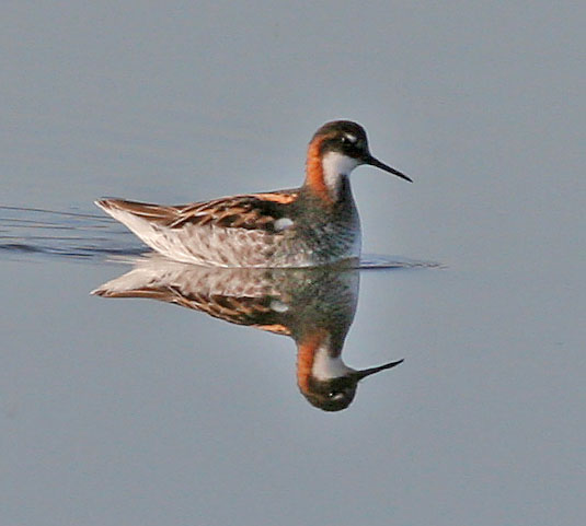 Though small in stature, phalarope concentrations on the ocean rival any seabird aggregation for intensity and beauty. Here, at the coast, the Red-necked Phalarope entertains us not with massive numbers but with beauty and its frenetic feeding habit. We easily understand the collective nouns for these birds, a "swirl", "twirl", "whirl", and "whirligig" of phalaropes.